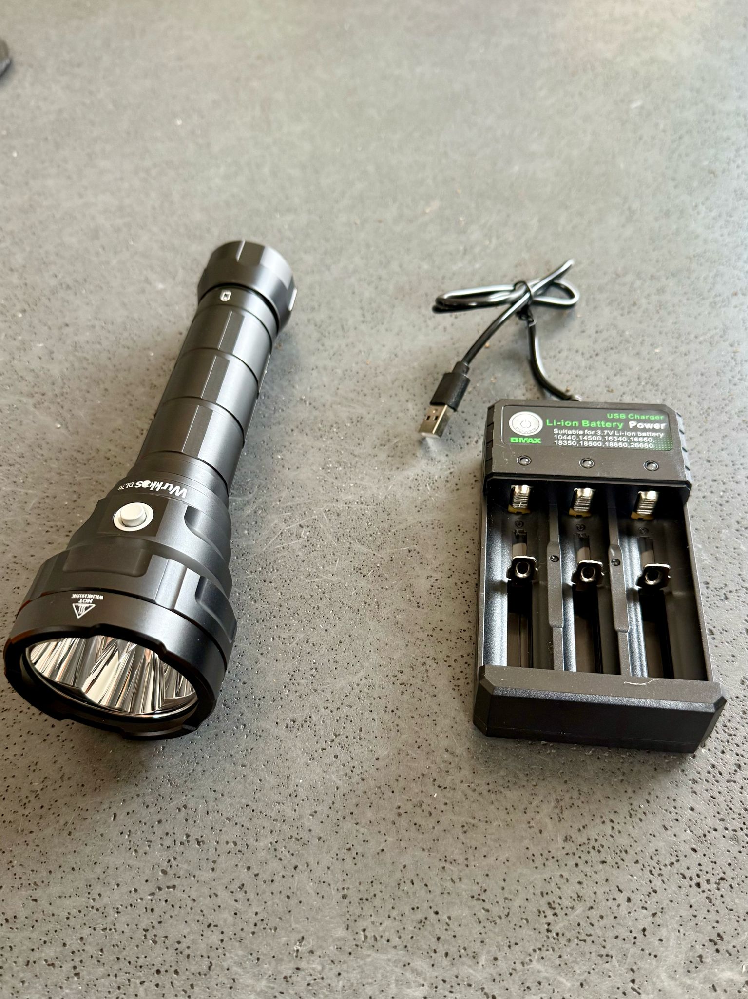 Lampe WURKOS 13000 Lumens avec chargeur et batteries .C’est une lampe compacte trĂšs puissante dotĂ©e d’une super autonomie.